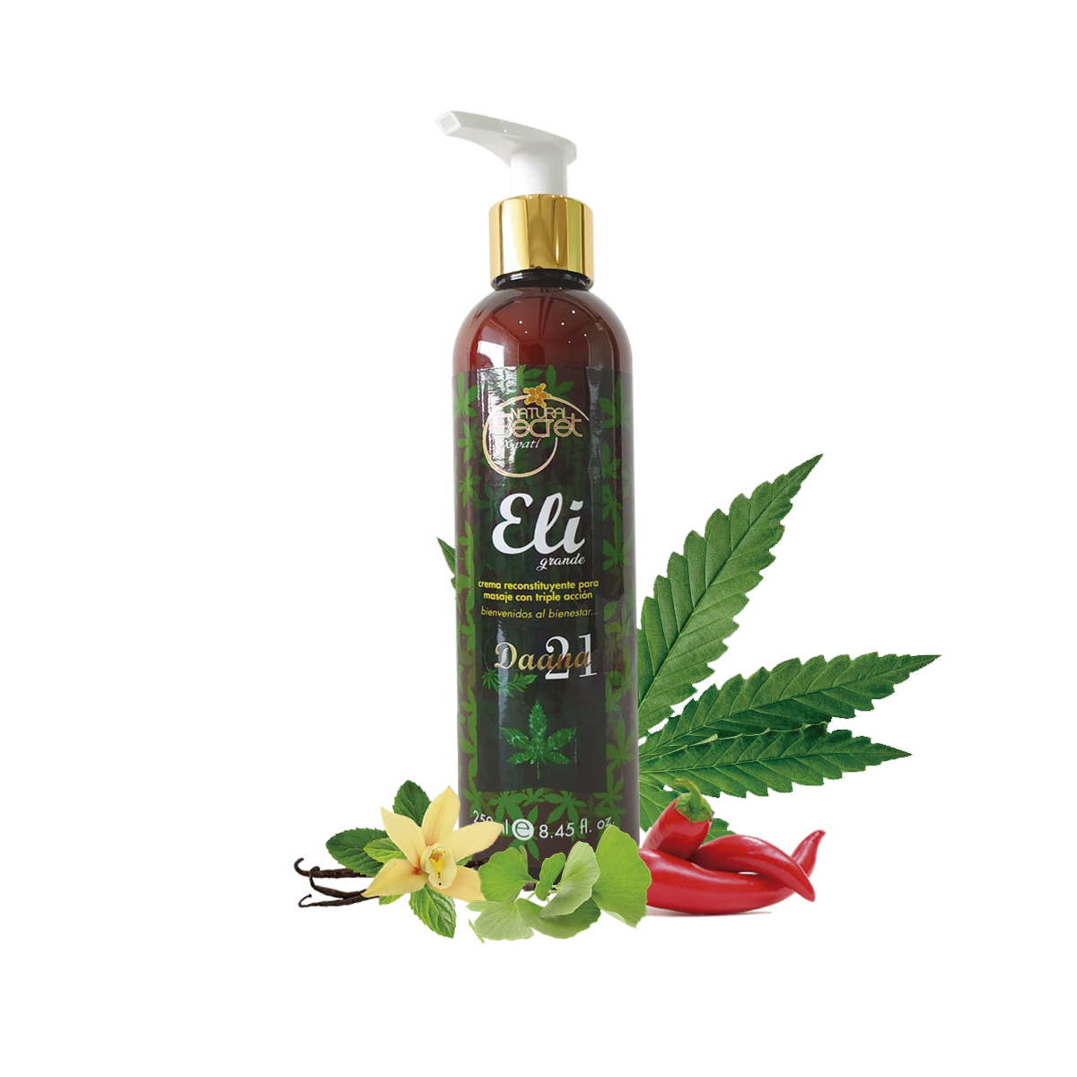 INGREDIENTES:Cannabinoides, capsaicina, vainilla Etil Butilo, aceite de árnica, sábila, zanahoria, hierba de san Juan, Colágeno natural, Snevia (ácido hialurónico vegano), extracto de Lúpulo, Centella asática, Ginko biloba concentrado, Sábila, Cacao,