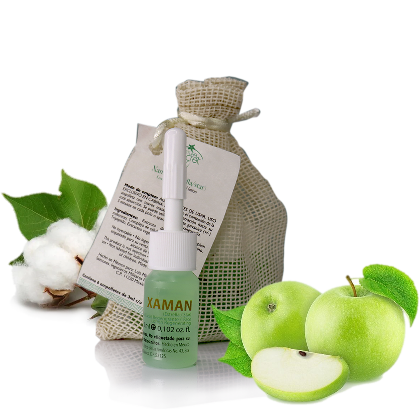 Complejo exclusivo con células madre de manzana verde, con intenso poder reestructurante, revitalizante y regenerante para recuperar la juventud de la piel, rellenar las líneas de expresión y recuperar la tonicidad.